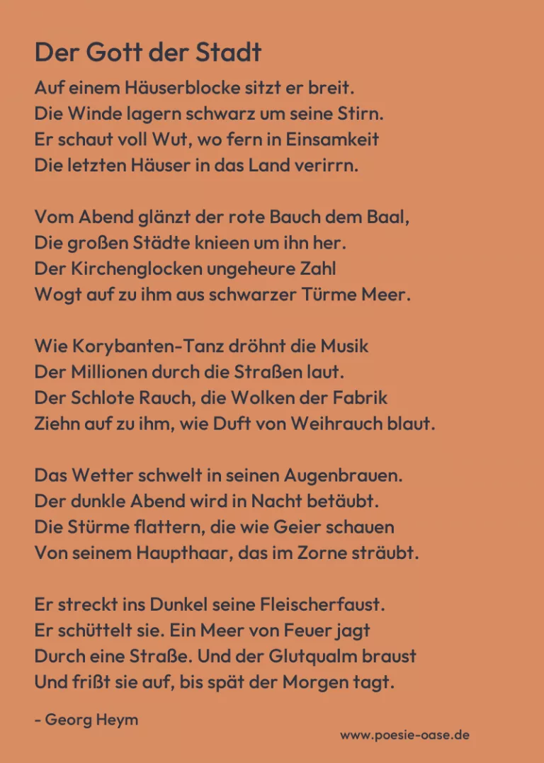 Dieses Gedicht fällt unter die „public domain“ oder Gemeinfreiheit. Gemeinfreiheit bedeutet, dass ein Werk nicht (mehr) durch Urheberrechte geschützt ist und daher von allen ohne Erlaubnis des Urhebers frei genutzt, vervielfältigt und verbreitet werden darf. Sie tritt meist nach Ablauf der gesetzlichen Schutzfrist ein, z. B. 70 Jahre nach dem Tod des Autors. Weitere Informationen dazu finden sich hier.